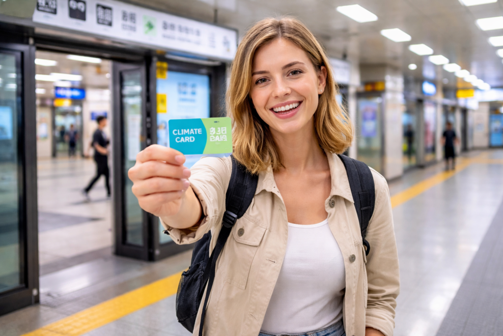 Tourists can use a physical Climate Card, which is the simplest option for many international visitors, especially iPhone users. Physical cards are sold at eligible subway station vending machines and some convenience-store-linked locations near subway stations.