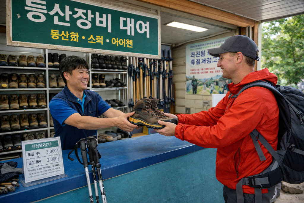 The Seoul Hiking Tourism Center (Bukhansan Mountain) offers hiking programs and rental services for foreigners. Multiple city and tourism sources also mention rental items such as hiking shoes, clothes, trekking poles, gloves, and seasonal gear. That is a huge help if you are visiting Korea without outdoor equipment.