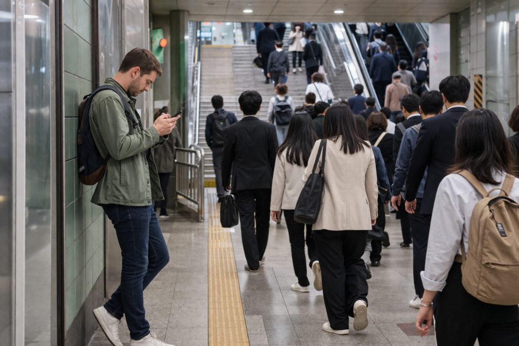 More often, it is because Korean public space operates under a different rhythm. Crowded cities create different body habits. Verbal politeness works differently. Flow matters. Speed matters. Predictability matters.