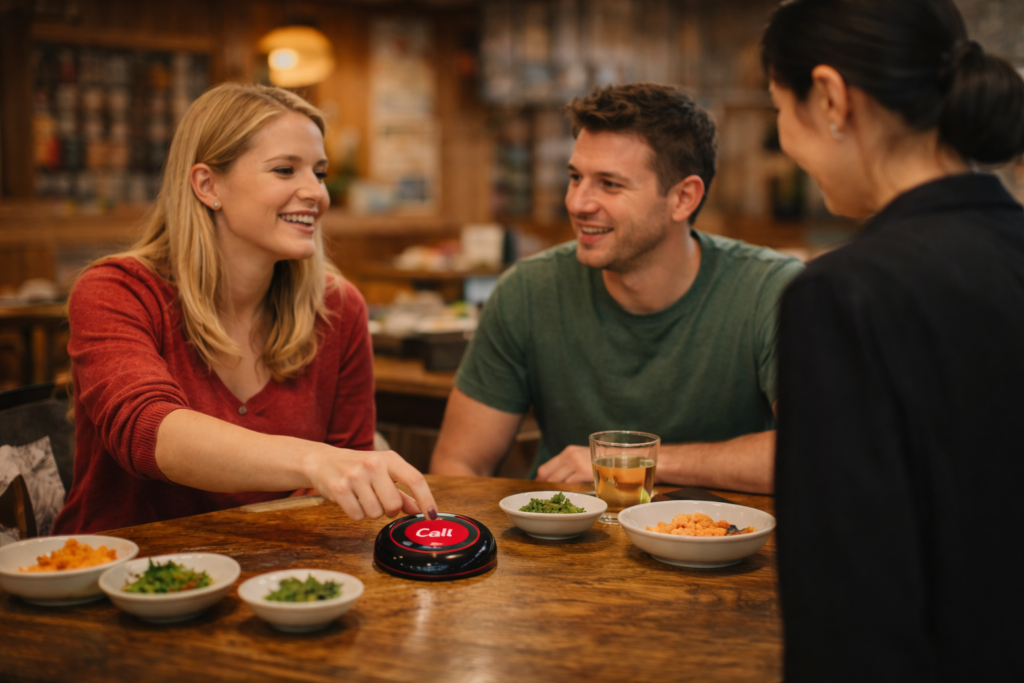 | Table bell / call bell | Casual Korean restaurants, BBQ, diners | Very fast | High when used calmly | Very easy |