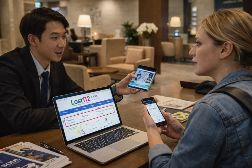 Use Lost112, Korea’s official police lost-and-found portal. Search for your phone, passport, wallet, or bag. If your item has not appeared yet, submit a lost item report as soon as possible.