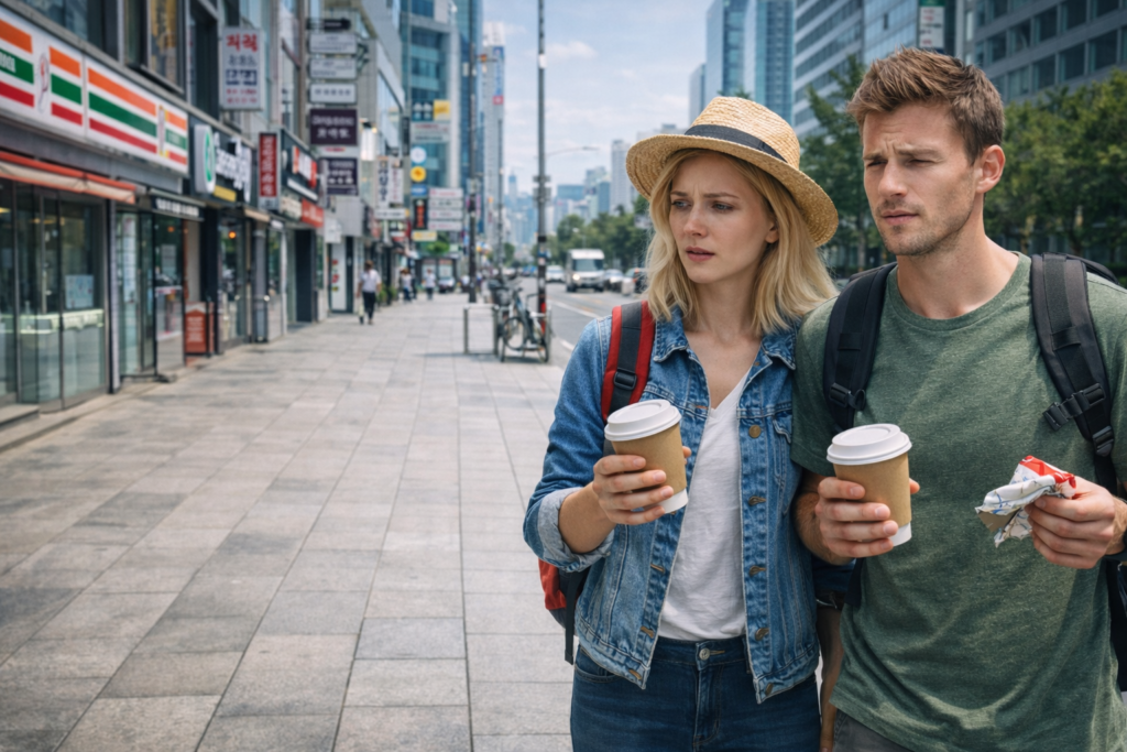This is one of the smartest Seoul travel habits. Coffee chains, convenience stores, and takeaway shops often make disposal easiest right after purchase. Once you leave the area, your options narrow fast.